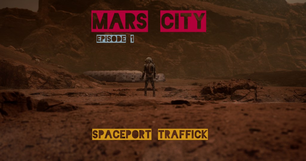Astronaut looking on a space habitat colony from a distance. Mars colonization concept. 3D rendering